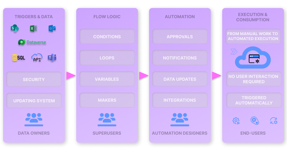 Our solutions leverage Microsoft Power Automate to simplify business processes, reduce manual work, and ensure tasks run smoothly and consistently across all systems.